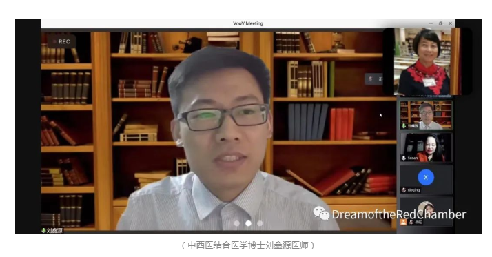 听完张博士的解读,中西医结合医学博士刘鑫源医师对讲开始,首先解析书中出现的几种药方:人参养荣汤、冷香丸、冰糖燕窝粥、疗妒汤、山羊血黎洞丸等。随后刘博士提到气一元论,是以气作为宇宙万物之本原的一种古代哲学思想是中医原创思维模式的要素之一。